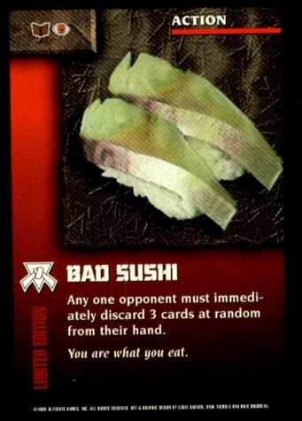 Wow, that Bad Sushi card would be absolutely broken in M:TG, depending on the casting cost.