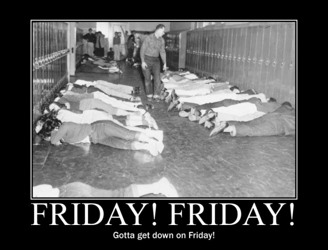 It's an air raid drill circa 1950-60s, when we thought Russia might bomb us.