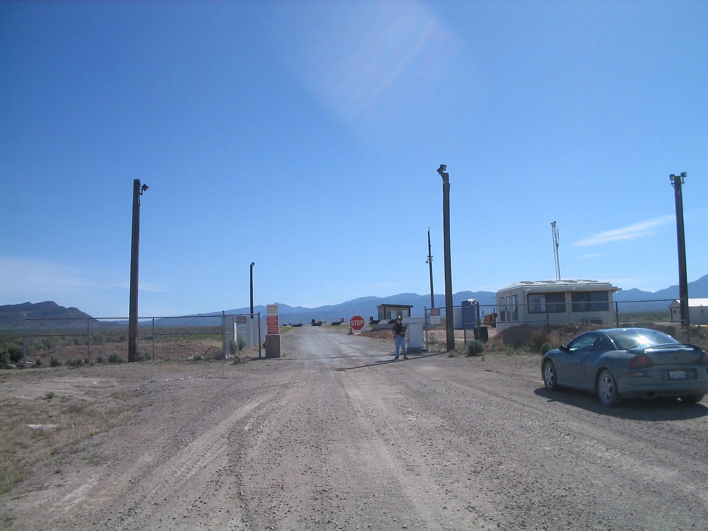 But I didn't drive out there for the hotel. I wanted to see the base! ...Or at least get as legally close as possible without getting my ass shot of or thrown in Ft. Leavenworth. This is actually the back entrance to Area 51; you can't get close enough to the front entrance to see anything at all (the buffer "kill zone" is too big):