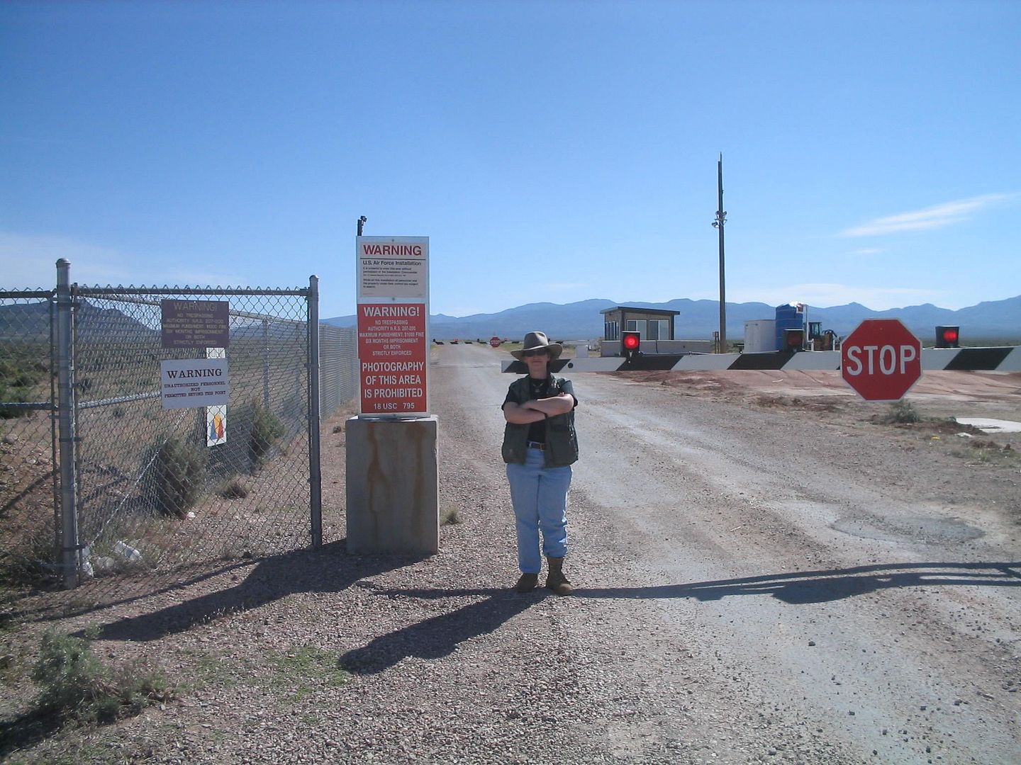 3) Get some snapshots of the "shoot on sight" signs, as well as get as close as I can to the main gate before getting chased off by the MiB.